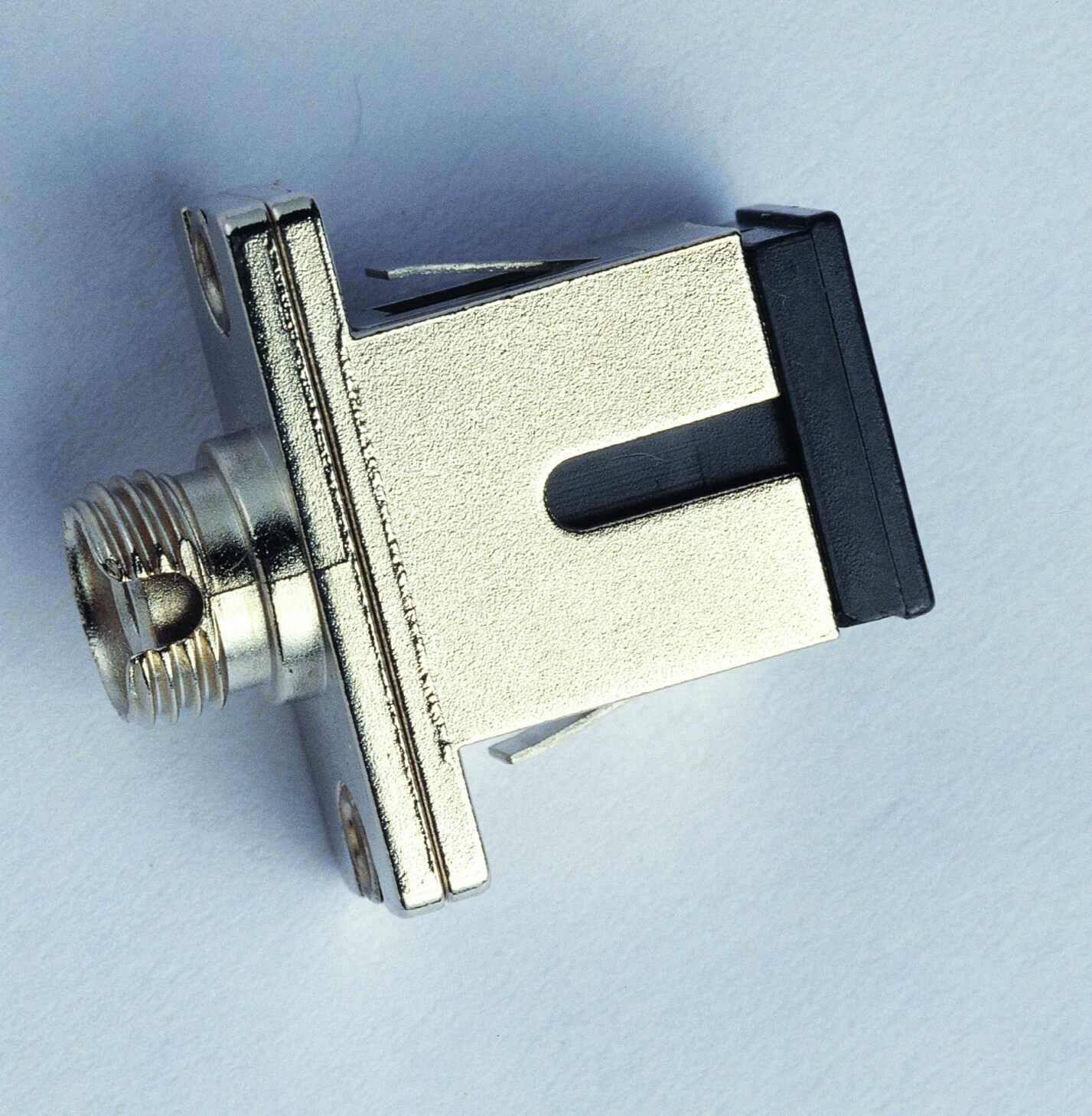 光纖適配器是一種采用彈性套筒或剛性內(nèi)孔來實現(xiàn)精密光纖對中的裝置,采用矩形結(jié)構(gòu)及彈性卡子鎖緊機構(gòu)實現(xiàn)將同一類型的不同連接器插頭連接對中,以保證兩個光纖活動連接器的連接性能。